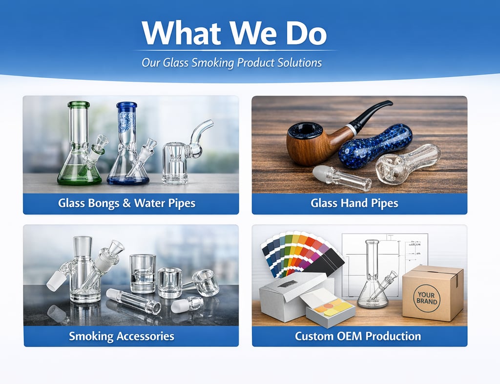 Founded with a focus on quality and reliability, our company specializes in the development and supply of glass bongs, glass water pipes, and related smoking accessories for the global market. From the beginning, our goal has been clear: to support brands, wholesalers, and distributors with stable manufacturing, consistent quality, and dependable long-term cooperation.